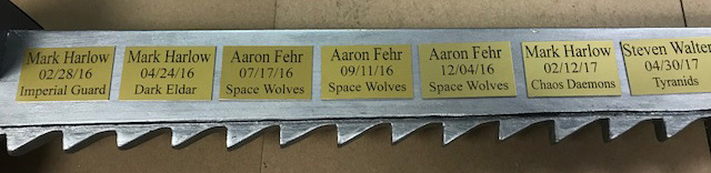 OUR WARHAMMER 40000 TOURNAMENT SWORD OF HONOUR (WINNERS):